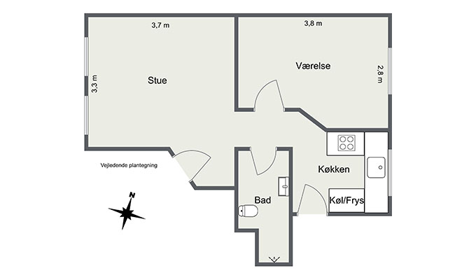 soveværelse med plads til dobbeltseng, klædeskab og evt. skrivebord.