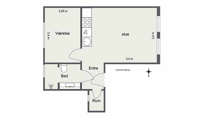 – Køkkenet er i forbindelse med indbydende stue med godt lysindfald.
